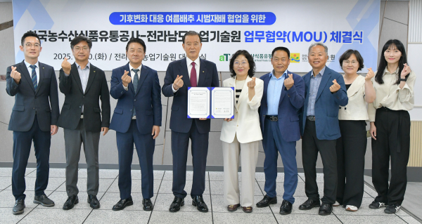[충청뉴스 최형순 기자] 한국농수산식품유통공사(aT)와 전라남도농업기술원이 기후변화에 선제적으로 대응하고 배추 수급 안정을 도모하기 위해 손을 맞잡았다.