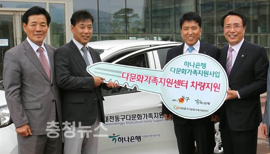 ㈜하나은행 함영주 충청사업본부 부행장은 20일 동구청 광장에서 한현택 동구청장이 참석한 가운데 동구다문화가족지원센터(센터장 전기수)에 업무용 경승용차를 전달했다. ▲ 경차 전달식우측= 한현택 청장과 함영주 하나은행 충청사업본부 대표 저작권자 © 충청뉴스 무단전재 및 재배포 금지 최온유 기자 다른기사 보기 기사가 마음에 드셨나요? 충청뉴스 좋은 기사 후원하기 1,000원 3,000원 5,000원 10,000원 30,000원 50,000원 직접입력 비회원 약관동의하기 ※ 소중한 후원금은 더 좋은 기사를 만드는데 쓰겠습니다.