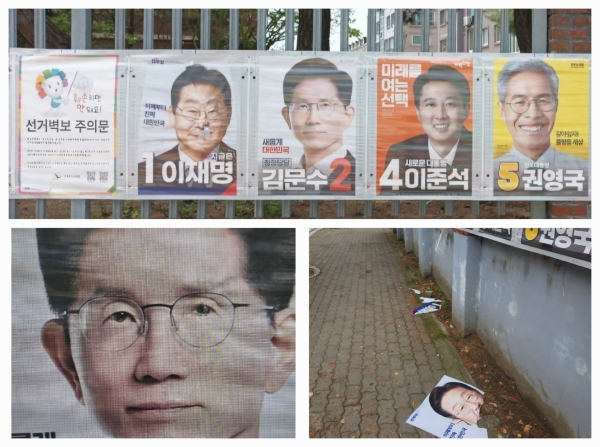 [충청뉴스 김용우 기자] 제21대 대통령선거가 10여 일 앞으로 다가온 가운데 대전에서 후보자 선거벽보와 현수막을 훼손하는 사례가 잇따르고 있다.