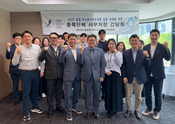 [충청뉴스 최형순 기자] 2027 충청 유니버시아드대회 조직위원회(위원장 강창희, 이하 조직위)는 오늘 서울 올림픽파크텔 로마홀에서 '종목단체 사무처장 간담회'를 성공적으로 개최하며 대회 경기 운영의 실무 협력을 한층 강화했다.