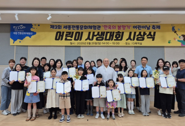 이날 시상식에는 사생대회 입상 어린이를 비롯한 학부모 등 70여 명이 참석했으며, 세종 전통문화체험관 현우 관장스님이 직접 시상을 진행하며 수상자들을 격려했다.