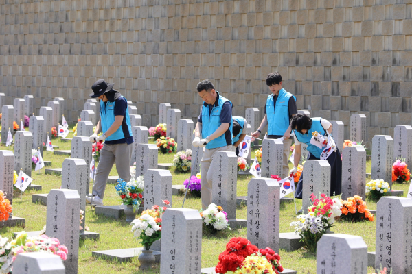 대전도시공사(사장 정국영) 임직원 50여명이 26일 국립대전현충원에서 봉사활동을 펼쳤다. 공사는 ‘1사 1묘역 가꾸기’ 결연 묘역인 708묘역에서 태극기 꽂기와 환경정화 활동을 펼쳐 호국보훈의 의미를 되새겼다. 저작권자 © 충청뉴스 무단전재 및 재배포 금지 김용우 기자 다른기사 보기 기사가 마음에 드셨나요? 충청뉴스 좋은 기사 후원하기 1,000원 3,000원 5,000원 10,000원 30,000원 50,000원 직접입력 비회원 약관동의하기 ※ 소중한 후원금은 더 좋은 기사를 만드는데 쓰겠습니다.