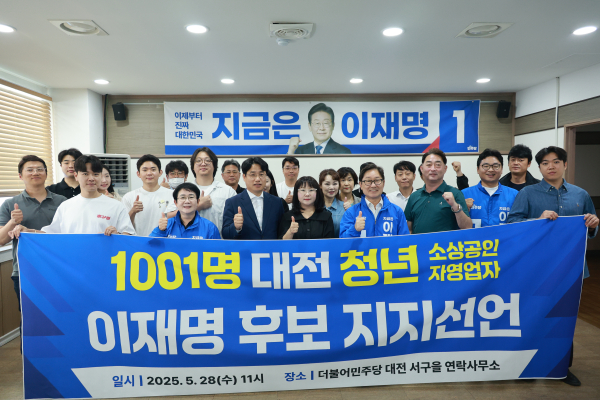 [충청뉴스 김용우 기자] 대전 지역의 청년 소상공인 및 자영업자 1,001명이 더불어민주당 이재명 대통령 후보에 대한 공식 지지 선언에 나섰다.