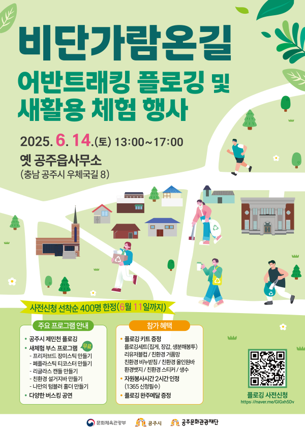 이외에도 환경을 주제로한 버스킹 공연, 친환경 플로깅 키트 증정, 플로깅 완주메달 증정, 자원봉사시간 인정 등 다양한 프로그램과 참가혜택을 제공할 예정이다. 행사는 오는 11일까지 사전 신청을 받아 진행되며, 접수는 상단 포스터 QR코드를 통해 접수할 수 있다.