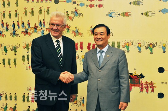 강창희 국회의장은 27일 저녁, 수교 130주년 및 광부 파독 50주년을 맞아 국회 초청으로 방한한 빈프리트 크레취만(Winfried Kretschmann) 독일 상원의장 일행을 국회 접견실에서 접견하고 경제․통상 분야의 협력 강화 방안 등 공동 관심사에 대해 의견을 나눴다.