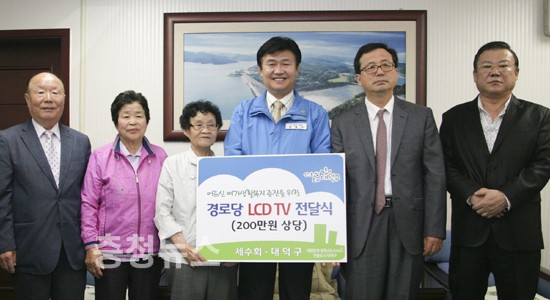 봉사모임 단체인 세수회(회장 이기상)에서는 29일 대덕구청 구민의사랑방에서 어르신 여가생활 복지증진을 위해 경로당에 전달해 달라며 ‘LCD TV 4대’를 대덕구에 기부했다고 밝혔다.