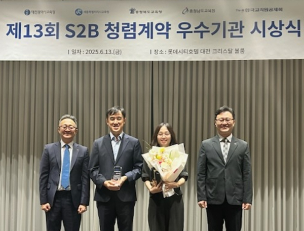 [충청뉴스 최형순 기자] 세종시교육청은 한국교직원공제회가 주관하는 ‘제13회 학교장터(S2B) 청렴계약 우수기관’으로 선정되어 6년 연속 수상하는 쾌거를 이뤘다.