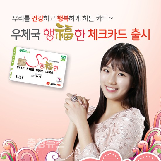 우정사업본부 충청지방우정청 (청장 이재홍)은 국민의 건전한 소비문화 조성과 정부의 체크카드 이용 활성화에 기여하면서 국민이 건강하고 풍요로운 행복한 생활에 도움이 되는 ‘우체국 행福한 체크카드’를 3일 출시한다고 밝혔다.