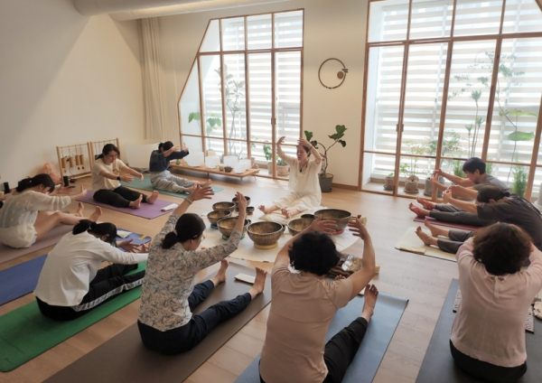 참가자들은 전문 지도 아래 다양한 요가 자세와 함께 움직이는 명상, 싱잉볼 명상 기법을 통해 스트레스를 해소하고 내면의 균형을 찾는 시간을 가졌다.