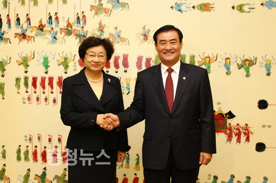 강창희 국회의장은 3일 오후 한·중 수교 21주년 기념 제10차 한·중 여성지도자포럼 참석을 위해 방한 중인 리 하이펑(李海峰) 중국인민정치협상회의 부주석을 접견하고 양국 간 협력 강화 및 교류협력 증진방안 등 공동 관심사에 대해 의견을 나눴다.