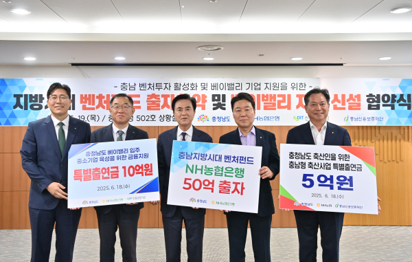 [충청뉴스 박영환 기자] 충남도는 19일 도내 벤처 투자 생태계 활성화 및 지역 기업 육성을 위한 ‘지방시대 벤처펀드 출자 확약 및 베이밸리 자금 협약식’을 개최했다고 밝혔다.