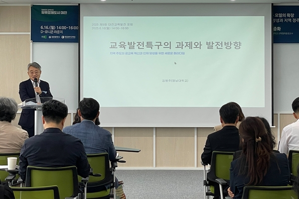 기조강연을 맡은 영남대 김병주 교수는 ‘교육발전특구의 과제와 발전방안’을 주제로 교육발전특구가 초·중·고부터 대학, 평생교육까지 아우르는 지역 맞춤형 교육체계 구축을 통해 지방정부 발전전략과 긴밀히 연계돼야 함을 강조했다.