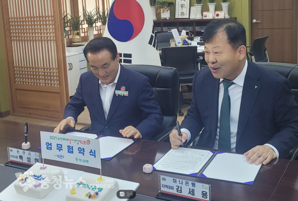 [충청뉴스 논산 = 조홍기 기자] 논산시(시장 백성현)와 하나은행이 ‘2027 논산세계딸기산업엑스포’의 성공적 개최를 위한 협력의 손을 맞잡았다.