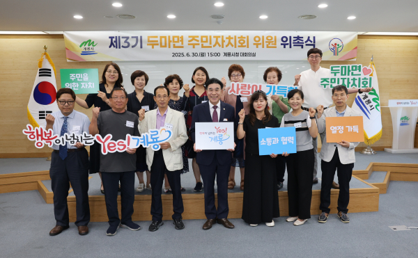 이응우 시장은 “새롭게 시작하는 제3기 두마면 주민자치회가 그동안의 경험과 성과를 바탕으로 진정한 주민자치를 실현해 주시길 바란다”고 말했다.