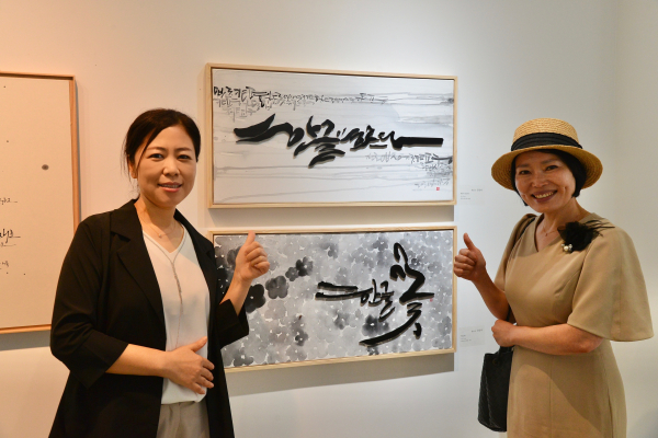 최근 대전시낭송예술인협회 변규리 회장(변규리시낭송아카데미 원장)은 '어우러지다' 전시장을 찾아 김순자 세종한글멋글씨협회 대표와 상호 발전 방향을 논의했다.
