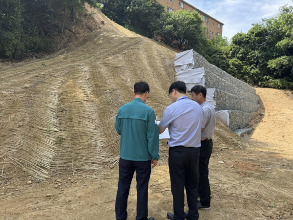 인주 밀두지구 급경사지 공사현장에서는 사면 안정화 상태를 중점적으로 살펴보고, 본격적인 태풍 및 호우 시기 이전에 공사가 완료될 수 있도록 신속한 추진을 당부했다.