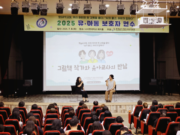 [충청뉴스 유규상 기자] 충청남도천안교육지원청(교육장 이병도)은 8일 유치원 및 초등 저학년 자녀를 둔 보호자 250여 명이 참석한 가운데 『챗GPT시대, 우리 아이의 첫 교육을 묻다』라는 주제로 보호자 연수를 개최했다.