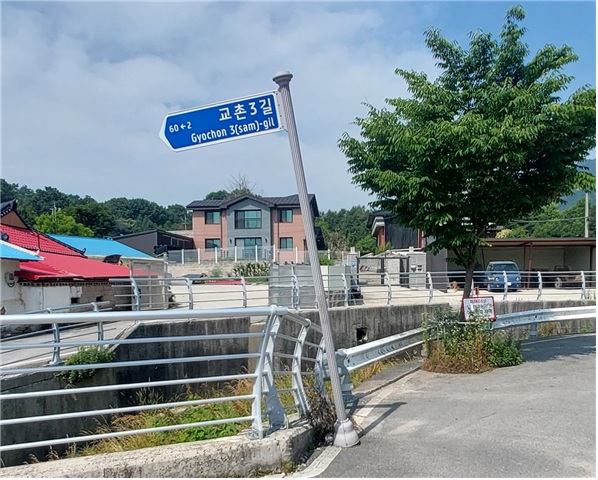 천안시 동남구 목천읍 교촌3길 2에 설치된 도로명판