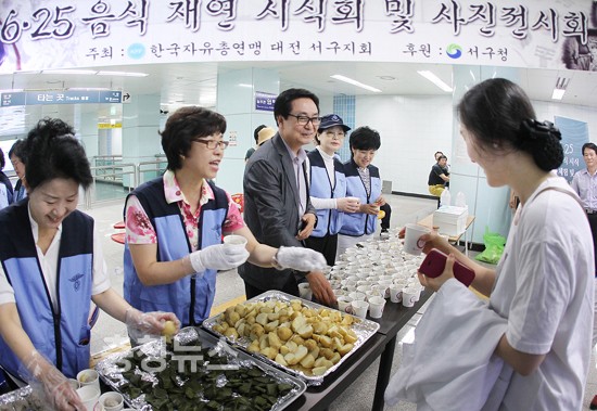 대전광역시 서구(박환용 서구청장)는 호국보훈의 달을 맞이해 25일 도시철도 1호선 용문역에서 6.25음식 재연 시식회와 사진전시회를 개최했다.