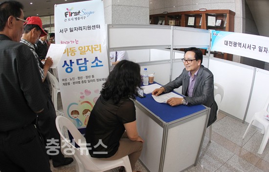 대전광역시 서구(구청장 박환용)는 26일 서구청 1층 로비에서 희망 오작교 취업 박람회를 개최했으며 취업을 희망하는 중장년층 등 500여명이 박람회장을 찾아 성황을 이뤘다고 밝혔다.