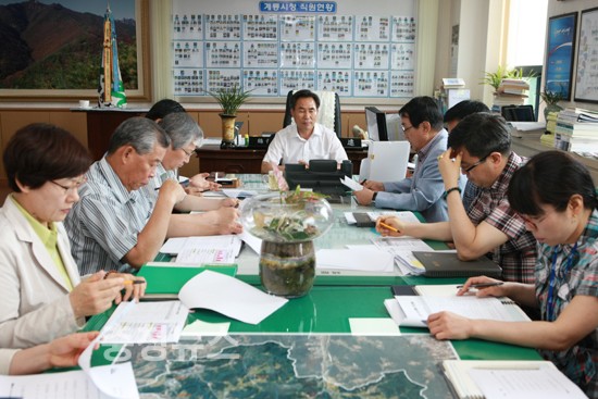 계룡시(시장 이기원)는 26일 오전 시장 집무실에서 담당부서장 및 업무담당 등 15명이 참석한 가운데 공공기관 유치를 위한 추진상황 보고회를 개최했다.