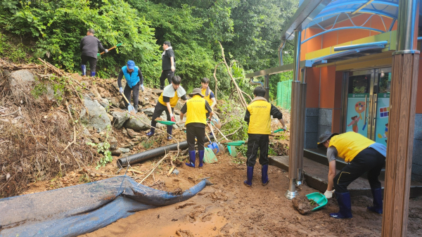 직원 20여명은 피해 학교 방문, 토사제거 및 학교 시설물을 정비