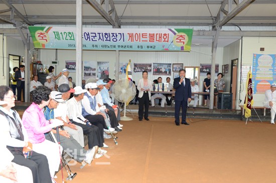 이용우 부여군수는 격려사를 통해 “게이트볼은 어르신들에게 건전한 여가선용의 기회를 제공함은 물론 상호간의 화합과 단결을 도모하고 함께하는 사회참여의 기회를 제공해 건강한 사회를 만들어 가고 있다”며 “오늘 대회를 통해 그동안 갈고 닦으신 기량을 맘껏 발휘해 부 여군 게이트볼 발전에도 기여하시고 건강증진에도 도움이 되길 바란다”고 말했다.