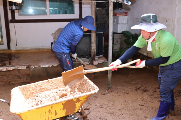 의원들과 의회사무과 직원들은 이날 오전 현장에 도착하자마자 침수 주택 정리, 토사 제거, 쓰레기 운반 등 복구 작업에 즉시 투입돼 구슬땀을 흘렸다. 특히 산사태로 집 안까지 진흙이 들이닥친 피해 가옥에서는 김기윤 의장을 비롯한 일행 모두가 한마음으로 팔을 걷어붙이고 정리에 나서며 주민들과 아픔을 함께했다.