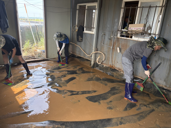 수해복구 중인 충남도 수산자원과 직원들 모습