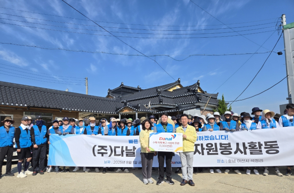 [충청뉴스 유규상 기자] 온라인 금융서비스 기업 ㈜다날(사업부문 대표이사 진창용)은 지난 1일 아산시에 수해 복구 사업비 1,000만원을 후원받고, 임직원 자원봉사자 100여명이 아산시 염치읍석정리 일대 수해 복구 현장에 직접 참여했다.