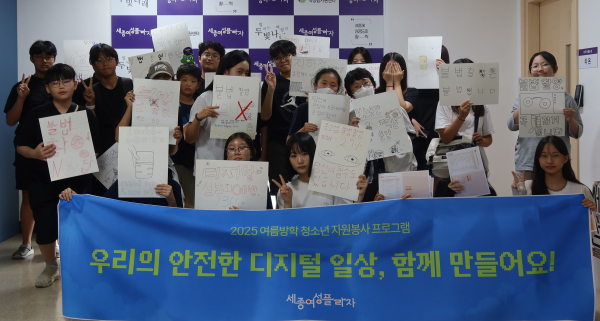 [충청뉴스 최형순 기자] ​세종시사회서비스원이 운영하는 세종여성플라자(대표 홍만희)는 여름방학을 맞아 청소년들을 위한 특별한 자원봉사 프로그램 '우리의 안전한 디지털 일상 만들기'를 성공적으로 마쳤다.