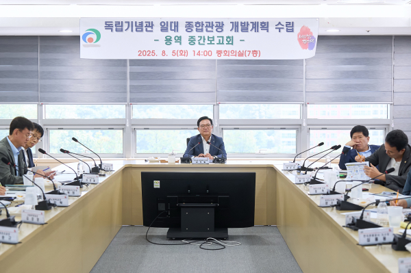 [충청뉴스 유규상 기자] 천안시는 5일 시청 중회의실에서 ‘독립기념관 일대 종합관광 개발계획 수립 용역 중간보고회’를 개최하고, 독립기념관 일대를 복합관광거점으로 조성, 체류형 관광 전환을 목표로 추진된다.