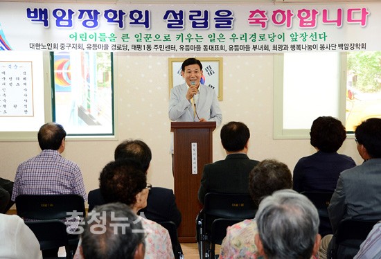이번 ‘백암 장학회’ 설립을 계기로 노인회는 태평중학교 학생에게까지 장학금 지급을 확대하고 이를 기념해 현판식을 가졌다.