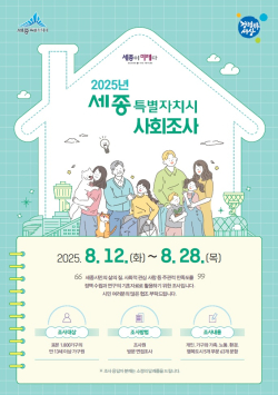 [충청뉴스 최형순 기자] 세종시가 오는 12일부터 28일까지 17일간 표본 1,800가구를 대상으로 ‘2025년 세종시 사회조사’를 실시한다.