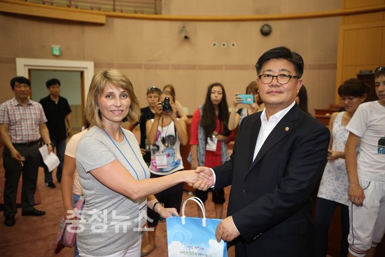 대전시의회 곽영교 의장은 15일 시의회를 견학.방문한 러시아 한류 의료관광 캠프 참가자들을 반갑게 맞이하면서 의회와 우리시를 좀 더 쉽게 이해할 수 있도록 홍보관과 본회의장 등을 함께 둘러보며 소개했다.