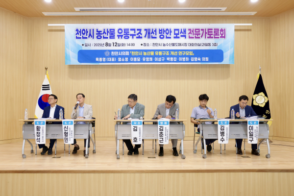 육종영 대표의원은 “천안 농산물이 제값 받고, 소비자는 더 신선하고 안전한 먹거리를 합리적인 가격에 만날 수 있도록 유통의 전 과정을 점검하고 혁신하려면 제도적 뒷받침이 따라야 한다”며, “오늘 논의를 토대로 실질적인 정책과 제도 개선안을 마련해 시정에 적극 반영되도록 하겠다”고 말했다.
