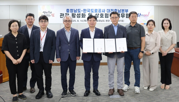 [충청뉴스 최형순 기자] 한국도로공사 대전충남본부(본부장 이혜옥)는 14일 충청남도와 '2025-2026 충남 방문의 해'의 성공적 개최를 위한 업무협약(MOU)을 체결했다.