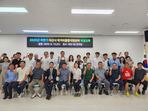 [충청뉴스 유규상 기자] 재단법인 아산시먹거리재단(상임이사 유지원)은 지난 13일, 초·중·고등학교 개학을 앞두고 신선하고 안전한 지역 농산물 공급을 위해 전 직원을 대상으로 ‘위생 및 품질 안전교육’을 실시하였으며, 재단 직원, 소분·피킹 담당자, 배송 기사 등 공공(학교)급식 업무 관련 인원 40여명이 참석했다.