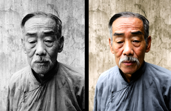 퍼노바 기술로 복원한 독립운동가 초대 부통령 이시영의 복원전(좌)후(우)모습
