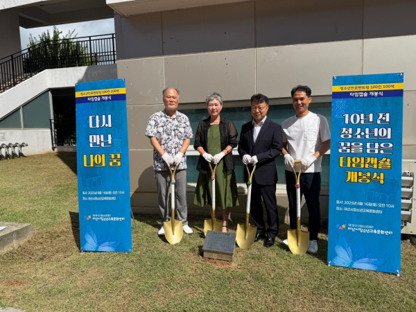 [충청뉴스 유규상 기자] 재)아산시청소년재단 아산시청소년교육문화센터(관장 배정수)는 16일, 10년 전(2015년) 총 60여명 청소년들의 꿈과 소망을 담아 묻었던 타임캡슐 개봉식을 개최했다.