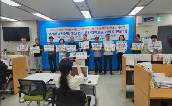 마지막으로 시민단체들은 "정부는 해당 전기를 생산하지도, 소비하지도 않는 천안에 피해만 입히는 송전선로 계획을 즉각철회하고, 재생에너지 생산지역에 전력 수요기업이 이전하도록 유인대책을 수립하라"고 강력히 촉구했다.