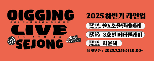 9월 27일에는 한국 인디 록의 전설 ‘3호선 버터플라이’가, 11월 29일에는 재즈와 포크 감성을 동시에 품은 ‘지윤해’가 부드러운 선율로 한 해의 마지막을 장식한다.