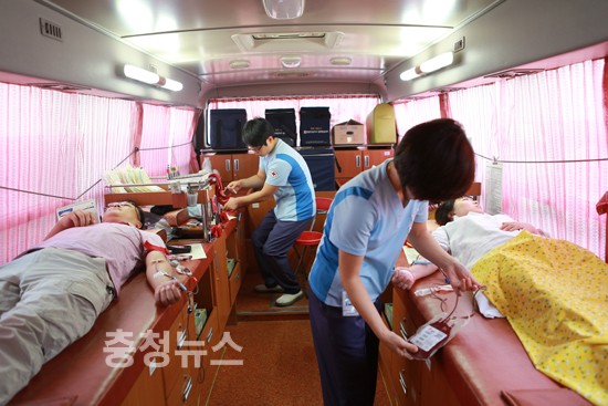 충남대학교병원(원장 송시헌)에서는 26일 오후 행정동 앞 주차장에 마련된 현혈차량에서 병원 임직원들이 참여한 가운데 ‘사랑의 헌혈’ 행사가 개최됐다.