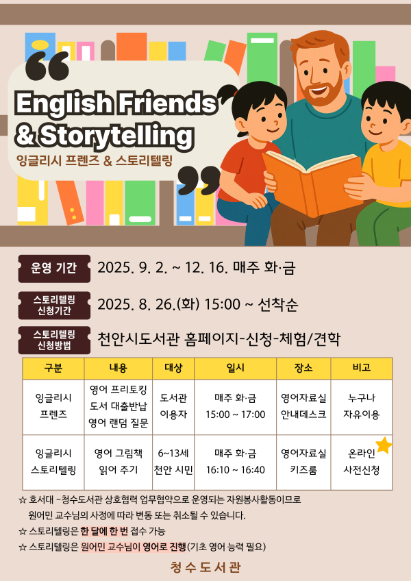 천안시 청수도서관 영어 체험 프로그램 홍보문.