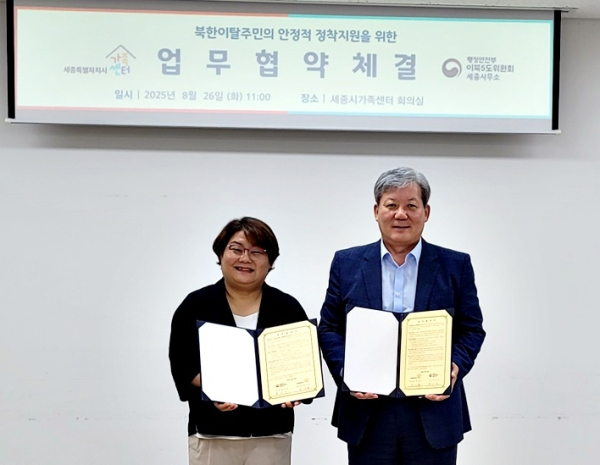 하미용 세종시가족센터장은 “이번 협약이 북한이탈주민이 지역사회 구성원으로서 안정적으로 자리 잡는 데 큰 도움이 될 것”이라며, “앞으로도 다양한 복지 수요에 발맞춰 적극적으로 지원하겠다”고 밝혔다.