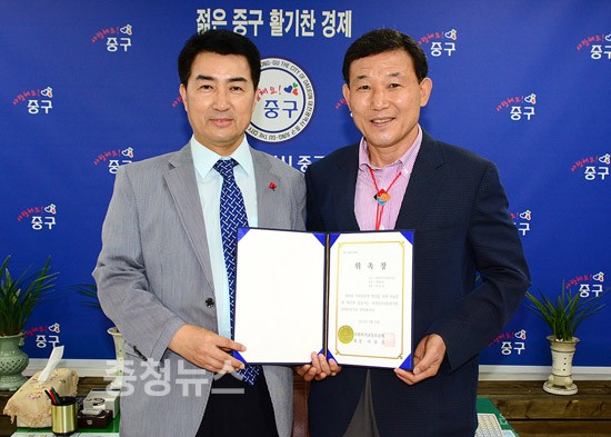 대전시 중구 박용갑청장은 31일 집무실에서 사회복지공동모금회 중앙회(회장 이동건)로부터 나눔 봉사단 명예 단장 위촉장을 전달받았다.