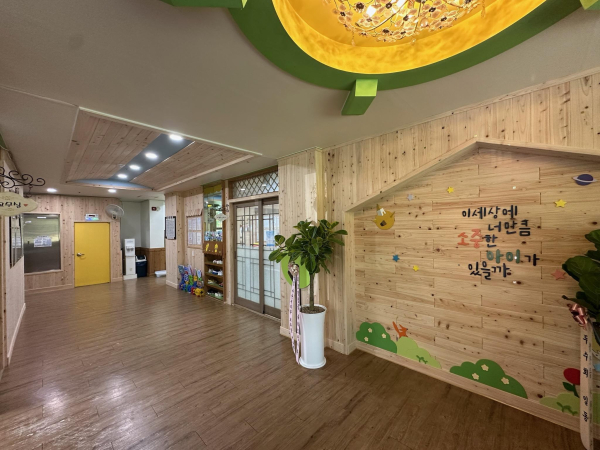 시는 산림청의 ‘어린이놀이시설 목조화사업’ 공모에 자연어린이집이 선정됨에 따라 보육실, 복도 등의 실내 벽면의 70% 이상을 국산 목재로 마감했다.