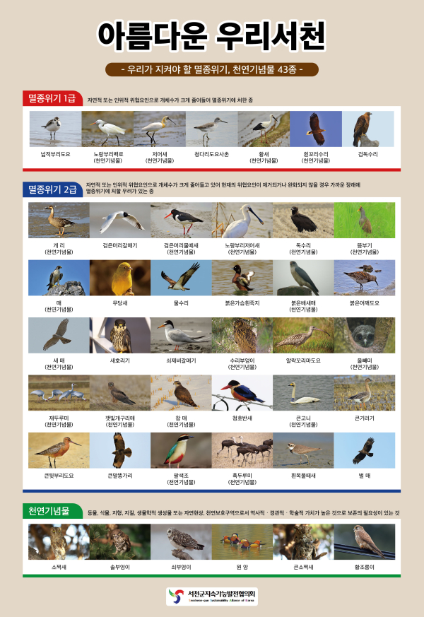 서천군 생태자산 한눈에… 43종 멸종위기종·96종 산새 포스터 발간