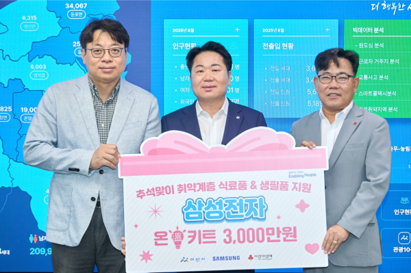 전달식에는 오세현 아산시장과 삼성전자 천안온양캠퍼스 사회공헌센터장 신인철 상무, 유병설 충남사회복지공동모금회 사무처장을 비롯해 아산시 사회복지기관 관계자들이 함께했다.