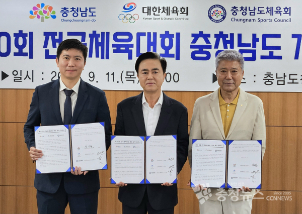 도는 11일 도청 상황실에서 대한체육회, 충남도체육회와 함께 전국체육대회 성공 개최를 위해 업무협약을 체결했다.